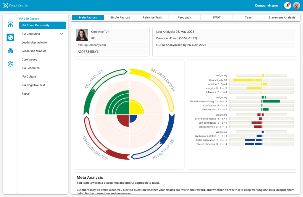 Find, tiltræk og vælg de rette kandidater med indsigt fra IPA-analyserne. Med Tiltrækning-modulet i IPA PeopleSuite HR får I en datadrevet rekrutteringsproces, der kombinerer personlighed, motivation, ledelsestilgang og kognitive evner for at sikre det bedst mulige match mellem kandidat og organisation.